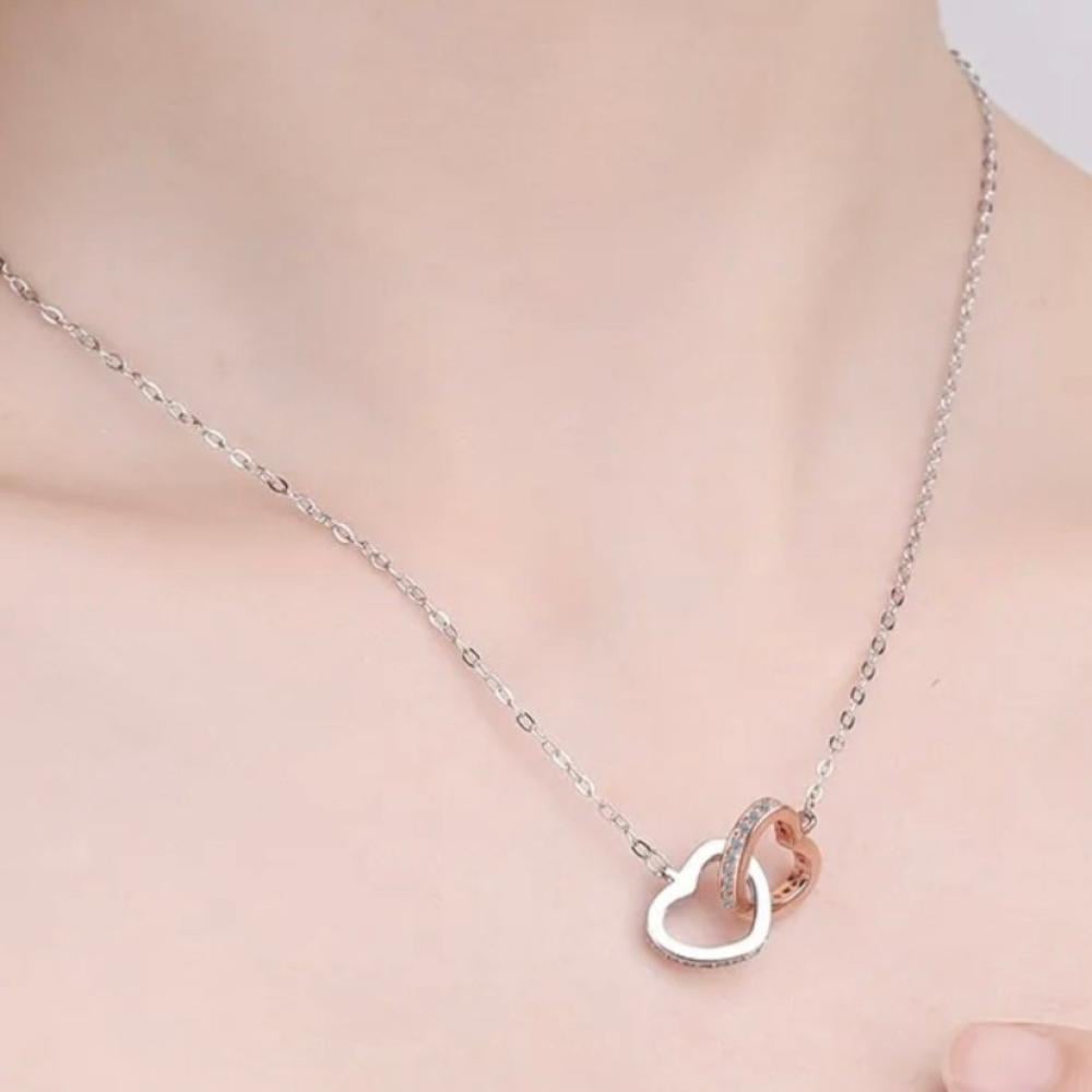 على شكل قلب مزدوج مطلية بالذهب الوردي وحجر الراين